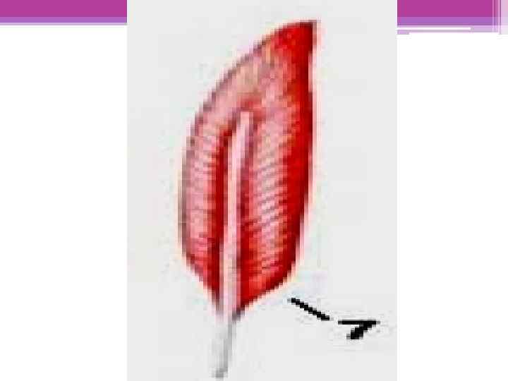 Физиологические и морфологические поперечники мышц • Анатомический поперечник – это площадь поперечного сечения мускула в наиболее широком месте. разрез идёт перпендикулярно длинной оси мускула • Физиологический поперечник – это площадь поперечного сечения мускула, но разрез проводится перпендикулярно мышечному волокну.