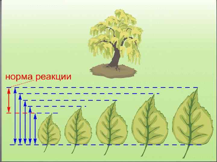 Модификационная изменчивость Несмотря на то, что под влиянием условий внешней среды признаки могут изменяться, эта изменчивость не беспредельна. Так, на поле пшеницы можно обнаружить растения с крупными колосьями (20 см и более) и очень мелкими (3 -4 см). Это объясняется тем, что генотип определяет определенные границы, в пределах которых может происходить изменение признака. Степень варьирования признака, или пределы модификационной изменчивости, называют нормой реакции.