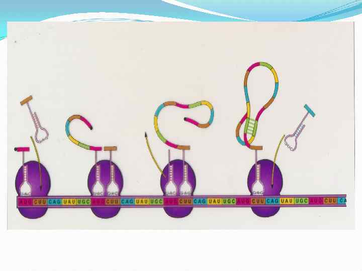 Т-РНК Содержит в своей структуре: 1. Сайт прикрепления аминокислоты (акцепторный конец) 2. Сайт связывания с рибосомой 3. Антикодон