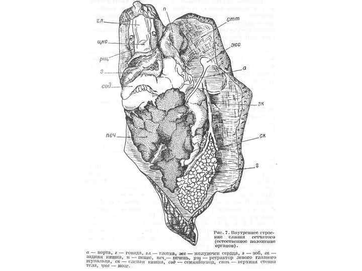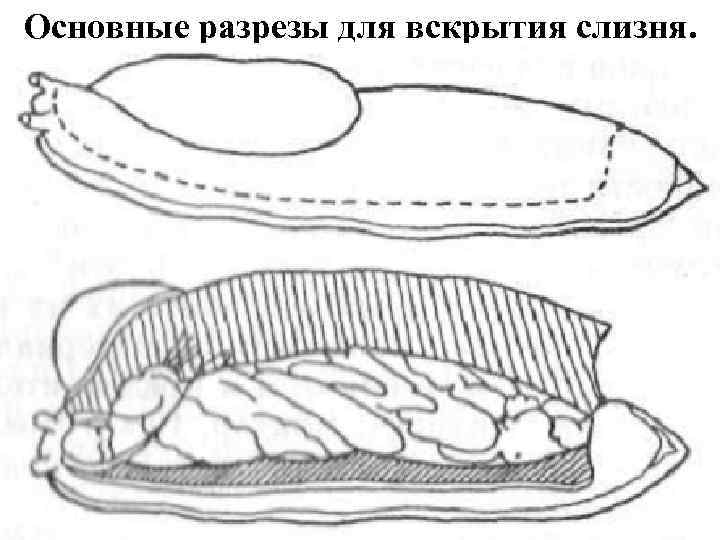 Основные разрезы для вскрытия слизня.