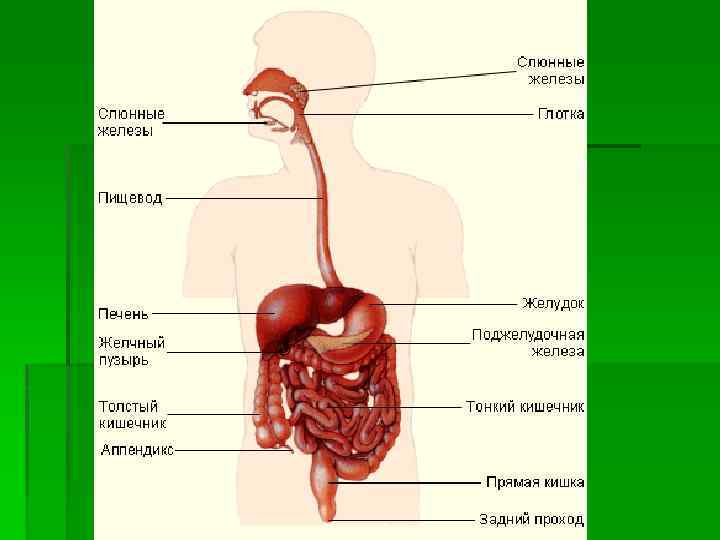 § Ротовая полость § Глотка § Пищевод § Желудок § Тонкая кишка § Толстая кишка § Прямая кишка