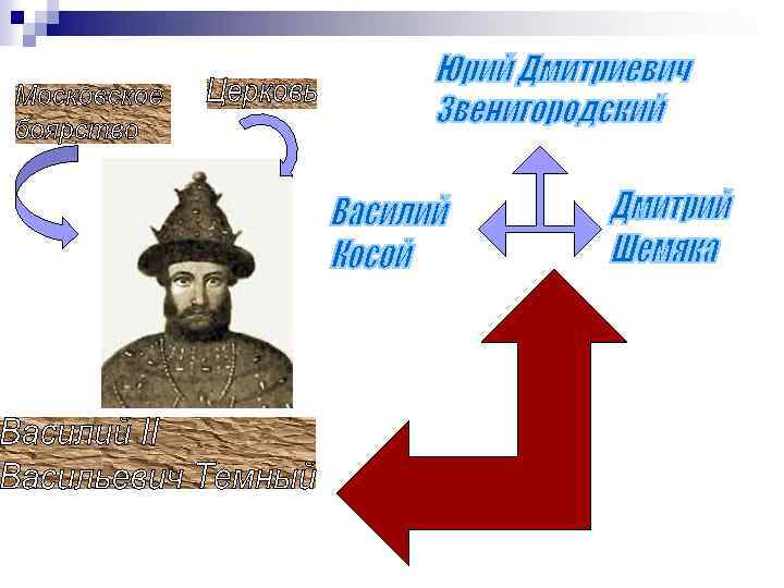 Война 1431 — 1453 гг. была последней усобицей на Руси. ■ От предыдущих она отличалась в первую очередь тем, что происходила в рамках одной московской правящей династии. Вопрос стоял не о том, какой город станет центром русских земель, а о том, кому из потомков Дмитрия Донского будет принадлежать власть в Москве.