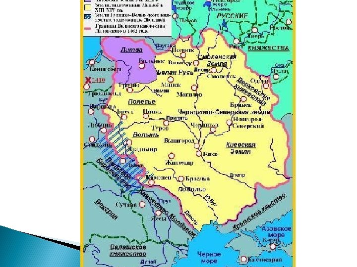 Западнорусские земли в XIII - XIV вв. : государственное устройство, внешняя политика. Великое княжество Литовское и Русское. Одним из последствий государственной децентрализации Киевской державы, усиленных Батыевым погромом, стало разобщение древнерусских территорий, когда Юг и Западная Русь попали под власть Литвы. Некогда единый славянский народ разделился на три ветви - великороссов, украинцев, белорусов. Разрыв культурных и политических связей между частями некогда единого целого вел к консервации некоторых диалектных и обрядовых особенностей, хотя осознание духовноэтнической общности не оставляло потомков древних русичей в условиях изолированности.