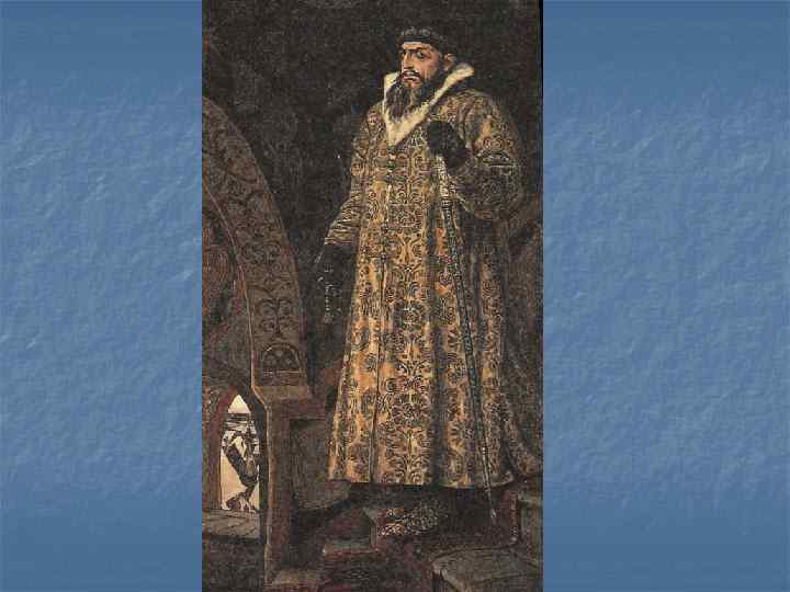 . Опричнина (1565 -1572 гг. ) Опричнина – основа политики царя Ивана IV (Грозного), включавшей разделение территории, землевладения и сословий феодалов, государственного аппарата и финансов на две части: опричнину (привилегированную часть) и земщину. В узком смысле опричнина – привилегированная часть государства. Служила орудием утверждения самодержавной власти царя. Представляла собой систему внутренних мер для борьбы с предполагаемой изменой. Была подчинена усилению личной власти Ивана IV Грозного, связана с преодолением удельной старины. Осуществлялась жесткими методами, террором. Опричная военная организация по приказу царя формировалась из дворян и детей боярских ( «избранная тысяча» ) и в начале насчитывала 1000 человек, а затем была увеличена до 6 тыс. человек.