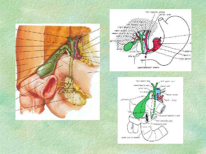 ОПЕРАТИВНЫЕ ВМЕШАТЕЛЬСТВА НА ЖЕЛЧНЫХ ПУТЯХ (ВИДЫ) 1. Холецистотомия 2. Холецистостомия 3. Холецистэктомия (традиционный–открытый доступ; лапароскопический; минилапаротомия-малый доступ) - от дна (антеградная) преимущество • надежная идентификация отдельных элементов шейки пузыря недостаток • большая кровоточивость - от шейки (ретроградная) преимущество • малая кровоточивость при выделении желчного пузыря (перевязка a. cystica); • предотвращается возможность проталкивания мелких камней из пузыря в ductus choledochus (перевязка d. cysticus) - комбинированный способ 5. Холедохотомия - эксплоративная (во время холецистэктомии) - трансдуоденальная 4. Билиодигестивные анастомозы (холецистоэнтеростомия, холедоходуоденостомия и др. ) 7. Папиллосфинктеротомия