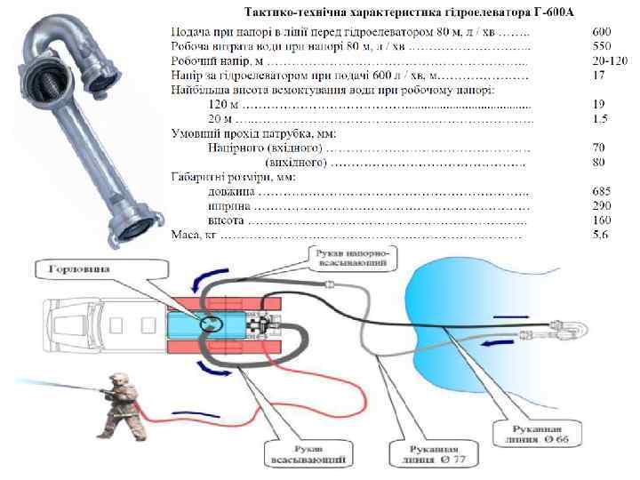 Для запуску гідроелеваторних систем у роботу необхідно визначити: § об`єм води в системі (об’єм води в напірних пожежних рукавах від напірного патрубку до гідроелеватора та від гідроелеватора до цистерни або насосу АЦ); § об`єм води в АЦ, необхідний для запуску в роботу системи та порівняти об’єм води в автоцистерні (повинен бути більше або рівним) з об’ємом води для запуску; § проаналізувати можливість спільної роботи гідроелеваторної системи та насосу АЦ; § встановити напір на насосі АЦ для стійкої роботи гідроелеваторної системи.
