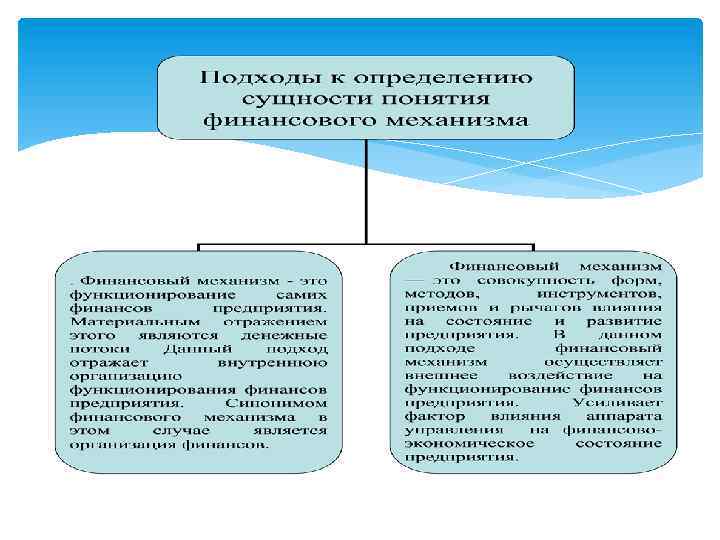 Финансовый механизм - это совокупность методов реализации экономических интересов путем финансового влияния на социально экономическое развитие предприятия. Составляющие финансового механизма: финансовое обеспечение; финансовое регулирование; система финансовых инструментов и финансовых индикаторов, которые дают возможность оценить влияние, действия финансовых механизмом