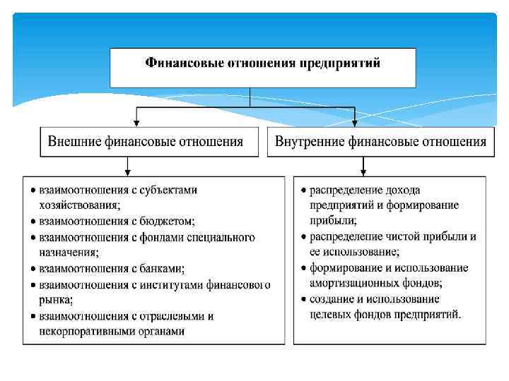Финансы предприятия - это экономические отношения, которые охватывают широкий круг денежных отношений, связанных с формированием и использованием капитала, доходов, денежных фондов, финансовых ресурсов в процессе их кругооборота и выраженные в виде денежных потоков определенного хозяйствующего субъекта Объект финансов предприятий - денежные отношения, связанные с формированием фондов денежных средств и последующим их расходованием. Субъект финансов предприятий - предприятие (организация), органы государственной власти и управления, органы финансовой системы