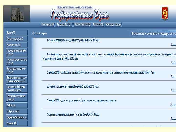 Официальные сайты http: //www. parliament. ru Парламентский портал (Государственная Дума и Совет Федерации) http: //www. kremlin. ru Официальный сайт Президента Российской Федерации http: //www. government. ru Официальный сайт Правительства Российской Федерации http: //premier. gov. ru Официальный сайт Председателя правительства РФ