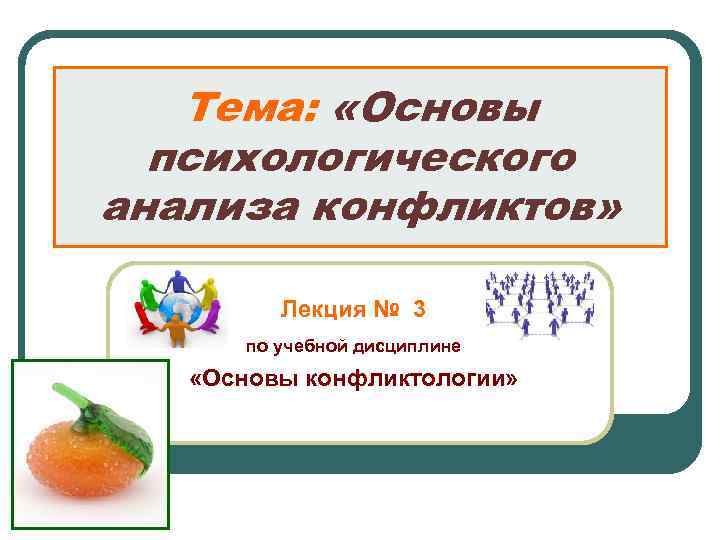 Тема: «Основы психологического анализа конфликтов» Лекция № 3 по учебной дисциплине «Основы конфликтологии»