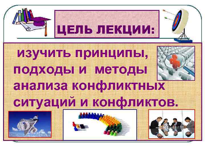ЦЕЛЬ ЛЕКЦИИ: изучить принципы, подходы и методы анализа конфликтных ситуаций и конфликтов.