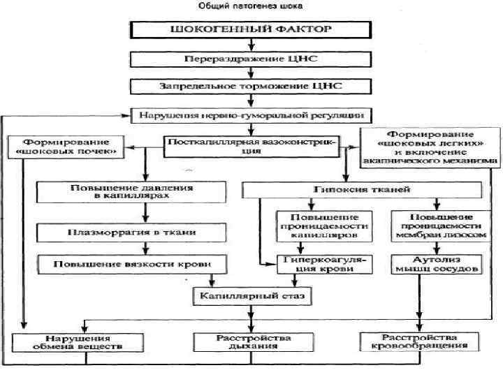 Шок - это патологическое состояние рефлекторной природы, возникающее при воздействии на организм сверхсильного раздражителя, вызывающего перераздражением нервной системы, которое сменяется глубоким нисходящим торможением, и ведущее к тяжелым расстройствам гемодинамики, дыхания и обмена веществ. (Пирогов, Бурденко, Джанилидзе, Павлов)