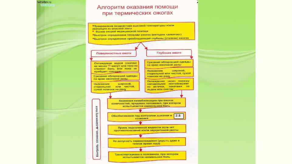 ПЕРВАЯ ПОМОЩЬ ПРИ ОЖОГАХ От быстрой и правильной первой помощи зависит глубина повреждения, дальнейшее течение заболевания, а иногда и жизнь пациента.