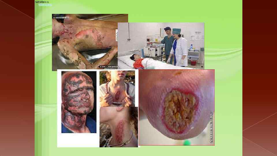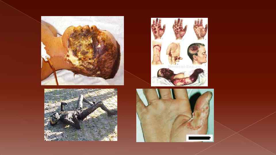 Ожоговый шок. Развивается в связи с раздражением огромного количества нервных элементов обширной области поражения. Чем больше площадь ожога, тем чаще бывает и тяжелее протекает шок Ожоговая болезнь. Чёткой границы между ожоговым шоком и ожоговой болезнью нет. По существу речь идёт об одном и том же явлении. В первые 2 -3 суток говорят об ожоговом шоке. На 3 -5 е сутки, как правило, полностью проявляются перечисленные выше осложнения, и врачи ставят диагноз: ожоговая болезнь.