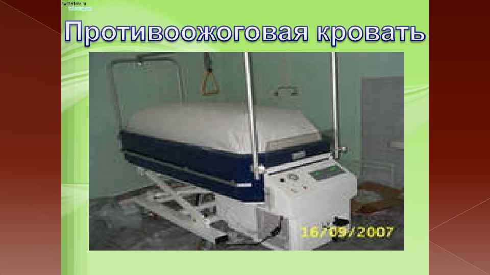 • Особое внимание уделяют профилактике переноса инфекции на ожоговую рану с предметов, которые используют при уходе за больными. С этой целью часто пользуют средства одноразового применения или приспособления, которые можно легко дезинфицировать. Для каждого больного выделяют отдельный стетоскоп, манжетку тонометра • Что касается смены повязки, то при обширных ожогах ее выполняют только под общим обезболиванием. В ряде случаев для облегчения снятия повязки пострадавшего предварительно укладывают в ванну с 0, 05 -0, 1% раствором перманганата калия, в теплой воде стерильными инструментами рассекают и снимают повязку. Затем закутывают больного в стерильную простыню и доставляют его в перевязочную. • нуждаются в интенсивной инфузионно-