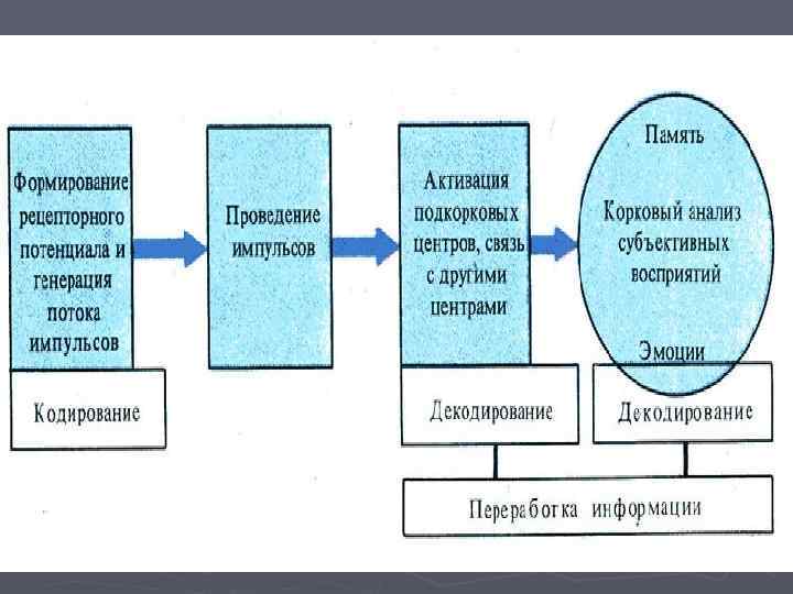 Анализатор (сенсорная система) – это сложная морфофункциональная система, осуществляющая восприятие информации, кодирование, проведение и анализ, синтез в коре головного мозга (Павлов И. П. ). Отделы анализатора и их функции: 1. Периферический (рецепторный) отдел - восприятие отдельных видов раздражения. 2. Проводниковый отдел (афферентные волокна, нейроны и подкорковые центры) - передача информации от рецепторов в ЦНС. 3. Центральный отдел (участки коры больших полушарий мозга) - восприятие афферентных сигналов, переработка анализ и синтез полученной информации.