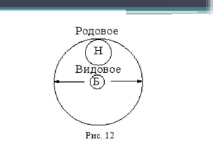 • Пределом цепочки ограничения любого понятия всегда будет какое либо единичное понятие а пределом цепочки обобщения, будет философская категория, например: мироздание, бытие, сознание. • Обобщение понятия – это логическая операция перехода от видового понятия к родовому с помощью исключения из его содержания какого либо признака (или нескольких признаков). Например, если от содержания понятия «биология» (Б) отбросить признак «изучать различные формы жизни» , то оно превратится в понятие «наука» (Н), которое будет родовым по отношению к исходному видовому «биология» (рис. 12).