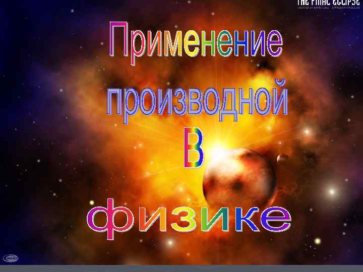 Физический смысл производной ► Производная в физике есть быстрота или скорость изменения какой-либо величины с течением времени. υ (t) = х/(t) – скорость a (t) = υ/ (t) – ускорение J (t) = q/(t) - сила тока C(t) = Q/(t) - теплоемкость ω (t)= φ/(t) - угловая скорость N(t) = A/(t) - мощность