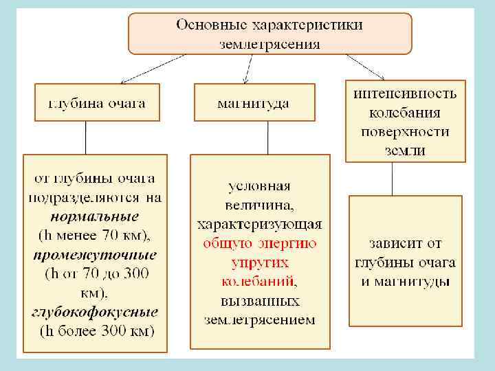 Очаг землетрясения – это некоторый объем в толще Земли, в пределах которого происходит высвобождение энергии. Центр очага – условная точка, именуемая гипоцентром, или фокусом. Проекция гипоцентра на поверхность Земли называется эпицентром. Вокруг эпицентра происходят наибольшие разрушения. Это так называемая плейстосейстовая область.