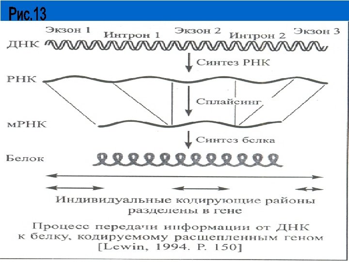 n 3. Выбор различных экзонов из одинаковых пре-м. РНК. При этом для формирования зрелых РНК могут использоваться различные экзоны, а часть из них не включается в сплайсинг. Выбор экзона зависит от стадии развития организма.