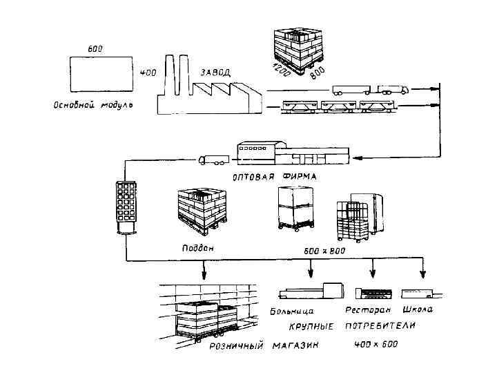 • Использование единого модуля позволяет привести в гармоническое соответствие размеры материально технической базы на всем пути движения материального потока, начиная от первичного источника сырья, вплоть до конечного потребителя