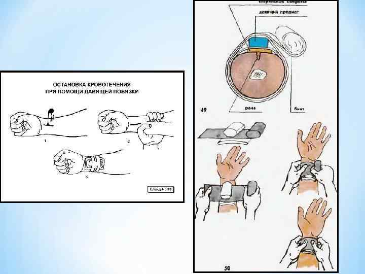* http: //baza-referat. ru/ * http: //www. medical-enc. ru/15/dtp/8. shtml * http: //fptl. ru/tehnika_bezopasnosti/krovote 4 enija. htm * «Общая хирургия» , Гостищев В К * http: //medkarta. com/? cat=article&id=23115 * http: //article-factory. ru/medicina/stati-medicina/132 -pravila-nalozhenija -davjaschej-povjazki. html * http: //bjd-online. ru/pravila-nalozheniya-sterilnyx-povyazok-pmp-prikrovotecheniyax/ * http: //kbmk. info/blog/college/258. html