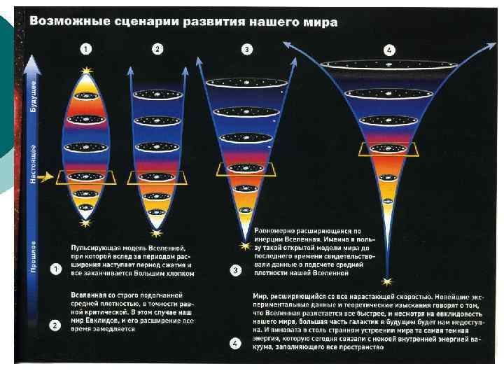 Космогония: концепция «Большого взрыва» Представления о первоначальном периоде жизни Вселенной моделируются гипотезой инфляционной Вселенной. В основе этой гипотезы – представление о существовании компенсирующей гравитационное притяжение силы космического отталкивания невероятной величины, которая смогла разорвать некое начальное состояние материи и вызвать ее расширение, продолжающееся по сей день.