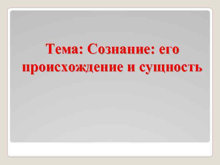 Тема: Сознание: его происхождение и сущность
