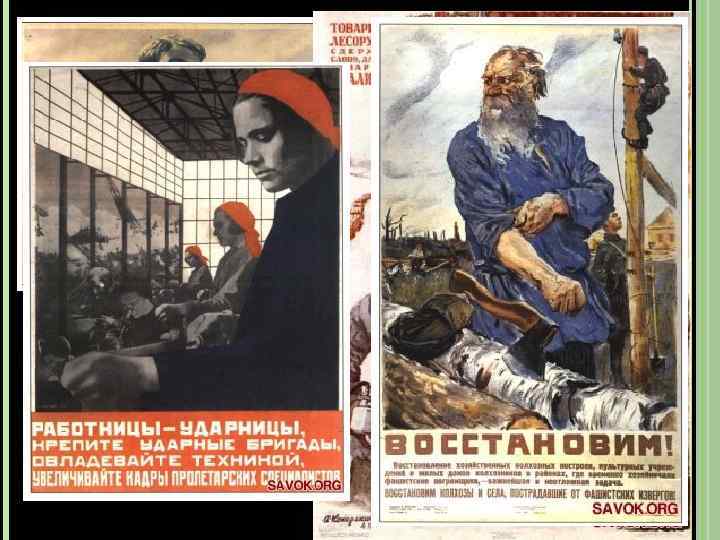 НЕСМОТРЯ НА БОЛЬШИЕ ПОТЕРИ И РАЗРУШЕНИЯ, СССР УДАЛОСЬ УЖЕ В ПЕРВОЙ ПОСЛЕВОЕННОЙ ПЯТИЛЕТКЕ НА 73% ПРЕВЫСИТЬ ДОВОЕННЫЙ УРОВЕНЬ ПРОМЫШЛЕННОСТИ. Ресурсы восстановления экономики страны: перераспределение средств аграрного сектора в промышленность, где приоритет предоставлялся развитию тяжелой промышленности и конверсии военного производства; сокращение расходов на социальную сферу, бесплатный труд узников ГУЛАГа и военнопленных, денежную реформу 1947 года, государственные займы; трудовой энтузиазм советских людей.