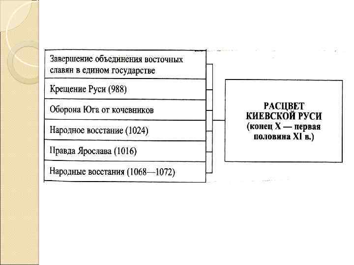 Второй этап (конец 10 - первая половина 11 в. ) – расцвет. Князь Владимир (980 -1015) - территориальное расширение (земли вятичей, хорватов, ятвягов, Тмутаракань, червенские города); Крещение Руси; введение письменности. Князь Ярослав Мудрый (1015 -1054) - упрочение международного положения государства, усиление экономической мощи страны; обширное строительство; первый сборник законов «Русская Правда» .