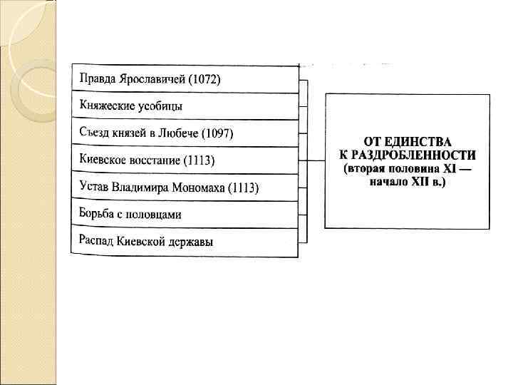 ЭТАПЫ РАЗДРОБЛЕННОСТИ Раздел земли между детьми Ярослава Мудрова (1054 г. ) Смерть Мстислава Великова (1132 г. ) Любечский съезд князей (1097 г. ) Взятие Киева войсками Андрея Боголюбского (1169 г. )