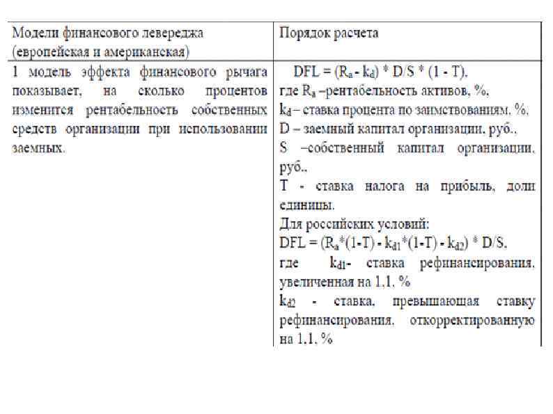 Финансовый рычаг Задача максимизация рентабельности собственного капитала (ROE) при заданном уровне финансового риска(D/E) Эффект финансового рычага