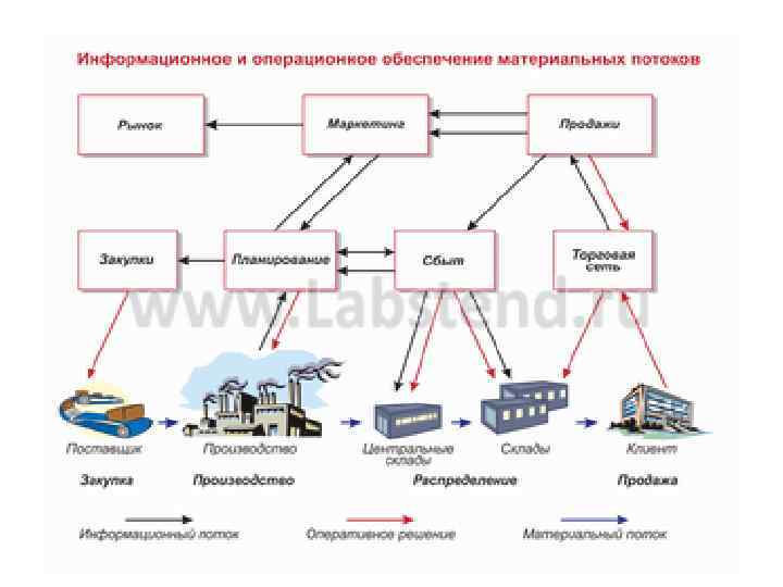 Управление в производстве, поставках, месторасположение, запасах, транспортировке и информации.