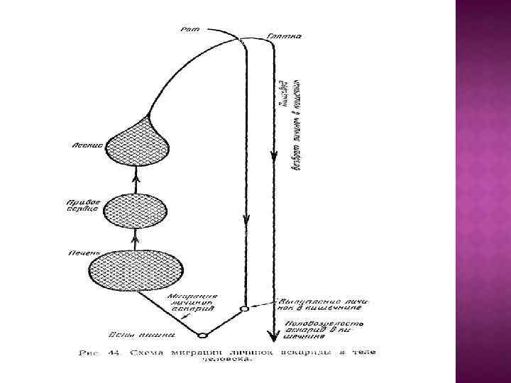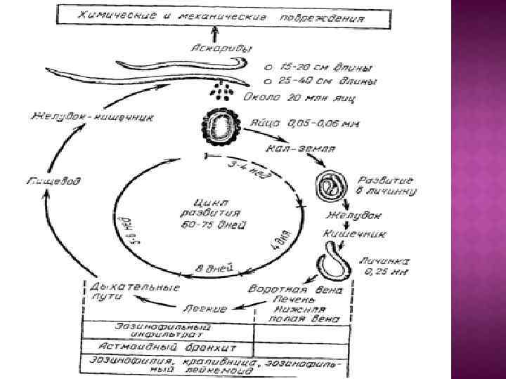Чередующиеся поносы и запоры. Паразиты заселяют и жёлчные печени, вызывая желтуху. Аллергизация ходы Тщательное соблюдение правил личной гигиены. Тщательная очистка и мытье овощей, фруктов и ягод. Обязательное ношение обуви.