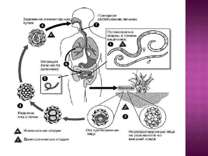 Хозяин Взрослый червь в слепой и толстой кишке Кишечник Окружающая среда Яйцо (почва) 25 -30 дней 23 -30°С Личинка в яйцевых оболочках