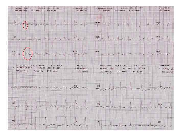 01. 03. 2002 року о 17. 00– зупинка дихання і серцевої діяльності; артеріальний тиск = 0 мм рт. ст. На ЕКГ ідіовентрикулярний ритм, поглиблення зубця S у V 4 V 6, блокада правої ніжки пучка Гіса, перехідна зона (R=S) у V 6. Розпочато в/в струменево введено по 1 мл адреналіна і 1 мл атропіна, розпочато зовнішній масаж серця, дихання “рот в рот”. Уведення адреналіну внутрішньовенно повторювалась кожні 10 хвилин. О 17. 30 серцево легенева реанімація припинена – в зв’язку з ознакаим біологічної смерті.