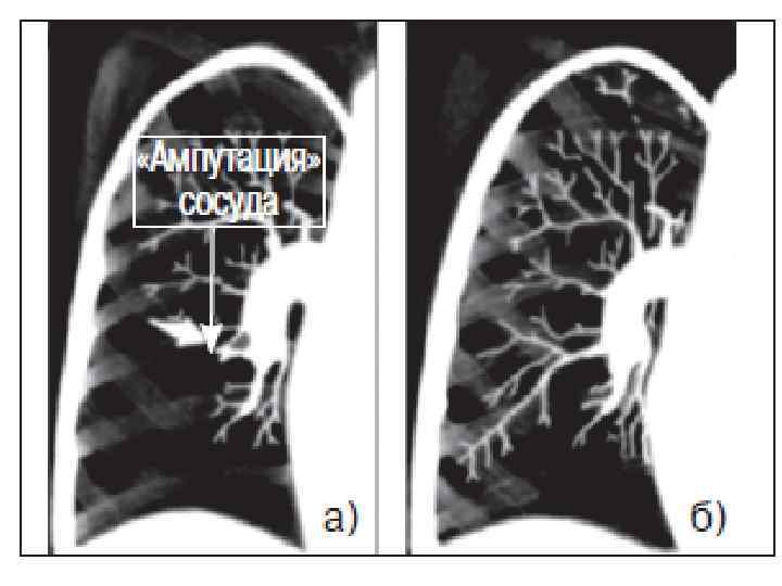 Ангіопульмонограма хворого з тромбоемболійєю головної гілки легеневої артерії справа