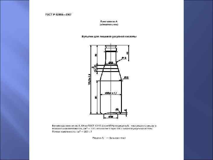ГОСТ Р 52898 -2007 Бутылки стеклянные для пищевой уксусной кислоты и пищевых уксусов. Технические условия
