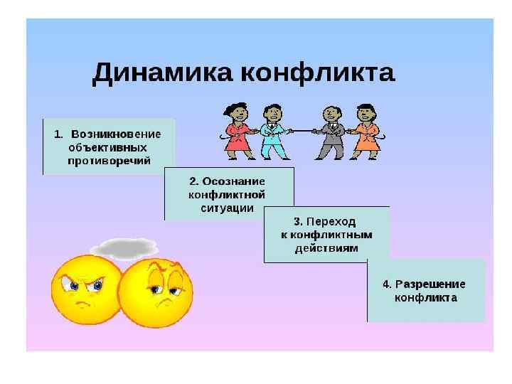 Конфликт – столкновение противоположно направленных целей, интересов, позиций, мнений людей, серьезное разногласие субъектов взаимодействия.