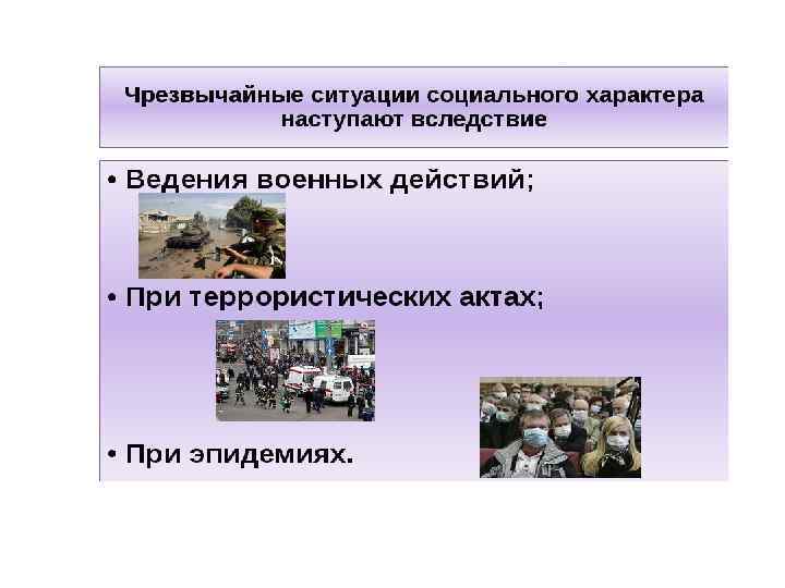 2. Управление общественными чрезвычайными ситуациями Специфическая особенность социальных ЧС – все они возникают в сфере взаимоотношений между людьми и зависят от человека. ЧС соц. характера сознательно планируются, готовятся, проводятся людьми.