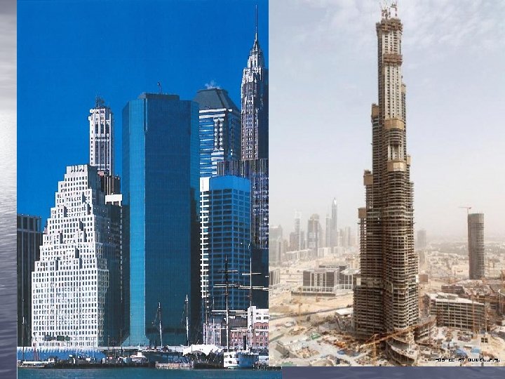 Арабские Эмираты • Строительство гигантского 155−этажного здания началось в январе 2004 года в городе Дубай. Небоскреб стоит на 192 сваях и фундаменте, толщина которого составляет 50 метров, а вес — 110 тыс. тонн. Для возведения 100 этажей потребовалась кропотливая работа 3 тыс. рабочих, 242 тыс. кубических метров бетона и 46 тыс. тонн металлоконструкций. Планируется, что первые 37 этажей небоскреба будут отведены под отель, остальные — под жилые апартаменты и офисы. В верхней части здания будет предусмотрена смотровая площадка, откуда любители острых ощущений с высоты птичьего полета смогут любоваться огромными просторами. После завершения строительства спиралевидная башня Burj Dubai будет занесена в Книгу рекордов Гиннесса как самое высокое здание мира.