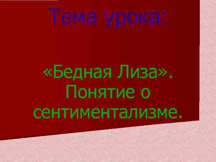 Тема урока: «Бедная Лиза» . Понятие о сентиментализме.