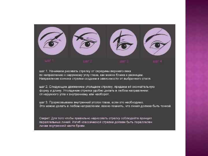 Кисть для прорисовки стрелок и подводки глаз. Тонкая кисть с хорошо прилегающими ворсинками применяется для прорисовки стрелок и подводки глаз.