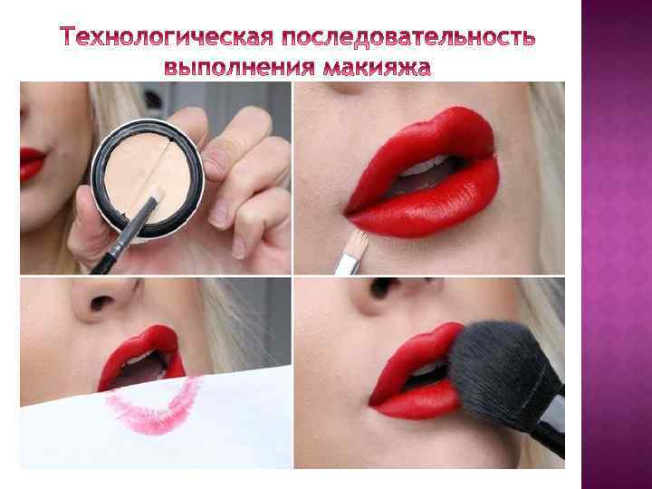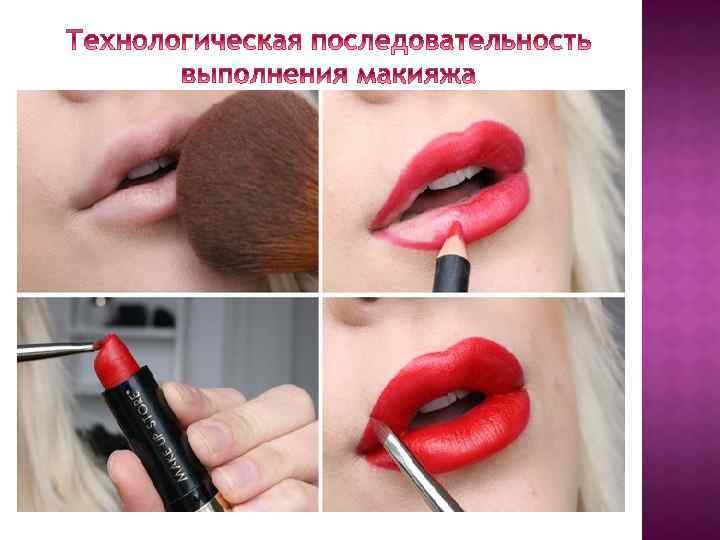 8) Губы В завершение красим губы. Чтобы подчеркнуть естественную красоту и свежесть, выбирайте светлые, но не очень бледные оттенки. Подойдут прозрачно-ягодные, светло-коралловые, розовые, персиковые тона. Губы должны быть не яркими, но подчеркнутыми. В зависимости от собственных предпочтений выбираем текстуру либо помады, либо блеска. Если в макияже используется помада, то лучше всего наносить ее кисточкой - так она ляжет равномерным слоем и удобнее будет прорабатывать контур. Существует огромное количество средств для губ: плотные, прозрачные, матовые, перламутровые, глянцевые, устойчивые, увлажняющие, жидкие, кремообразные. Советую пробовать разные текстуры для достижения определенного эффекта в каждом определенном случае и коллекционировать в своей косметичке как можно больше разных цветов. Ведь их можно между собой комбинировать и смешивать. Перекрасить губы из нежно-розового в ягодно-красный цвет к вечернему мероприятию после рабочего дня – проще простого!