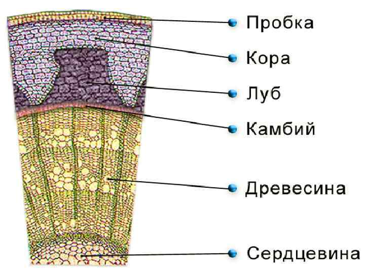 Передвижение по стеблю органических веществ. По ситовидным трубкам луба (флоэма) передвигаются органические вещества как в верхнем направлении так и в нижнем.