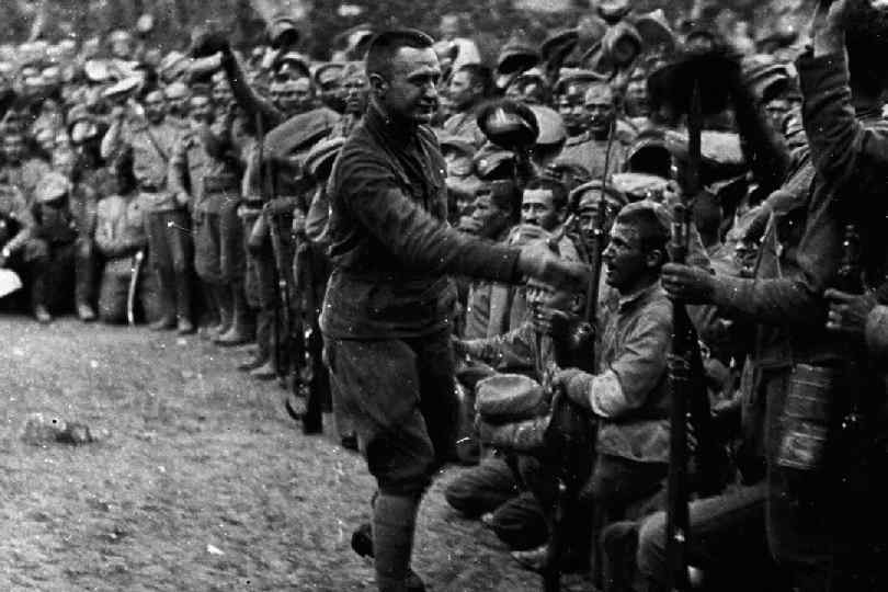 Наступление Керенского (июнь -июль 1917) А. Ф. Керенский выступает на фронте перед солдатами. Лето 1917 г.