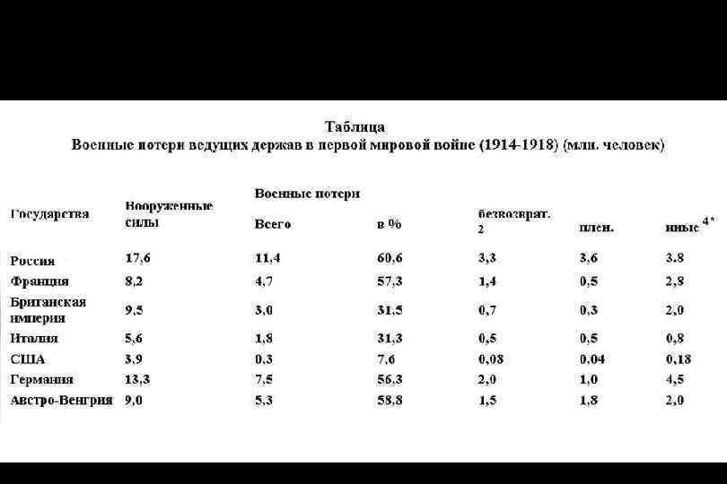 1918 год: выход из войны ЦЕНТРАЛЬНЫЕ ДЕРЖАВЫ АНТАНТА Великобритания Россия Германия Компьенское перемирие 11. 1918 Россия Брестский мир 3. 3. 1918 ия ан м р Ге Франция Болгария 29. 9. 1918 Австро-Венгрия я ли а Ит Се ния мы Ру Австро-Венгрия Вилла Джусти перемирие 3. 11. 1918 Сербия декабрь 1915 рб ия Болгария Османская Румыния Бухарестский мир империя 7. 5. 1918 Османская империя 30. 1918