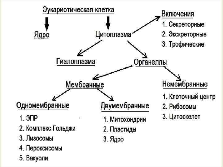НЕМЕМБРАН НЫЕ Рибосомы МЕМБРАННЫЕ Одномембран ные Двумембранные периксисомы ЭПС вакуоли клеточный центр комплекс Гольджи микротрубочки цитоскелет пластиды лизосомы митохондрии плазмолемма