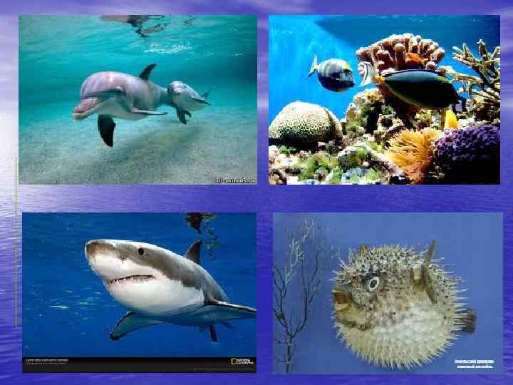 Нектон – от греческого слова «плавающий» . Это активно плавающие животные в толще воды: рыбы, киты, тюлени, моржи, дельфины, змеи, черепахи, плавающие медузы, кальмары и др. Все эти животные имеют обтекаемую форму тела, которая позволяет с легкостью передвигаться в толще воды.