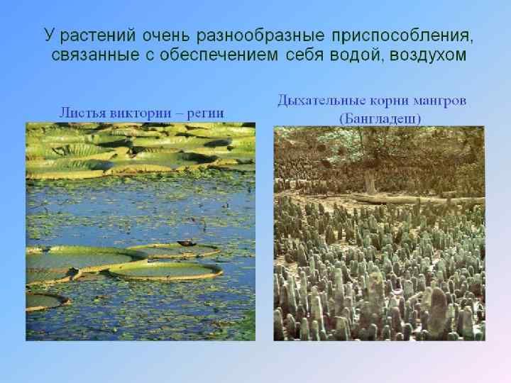 1 — ряска; 2 — кубышка; 3 — кувшинка; 4 — лотос; 5 — виктория-регия